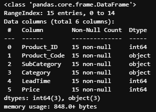 products.info() / products.head()