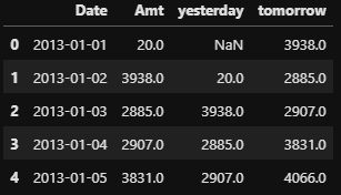 temp['yesterday'] = temp['Amt'].shift() # shift default: 1