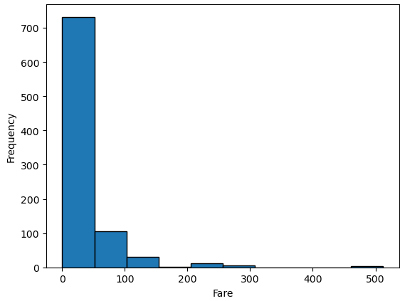 plt.xlabel('Fare')