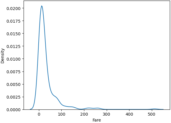 sns.kdeplot(titanic['Fare'])