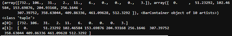 히스토그램은 튜플로 저장된다. 한번 확인해보자.
