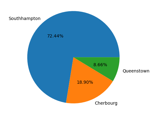 plt.pie(값, labels = 범주이름, autopct = '%.2f%%') -> 2f% = 소수점 두 자리까지