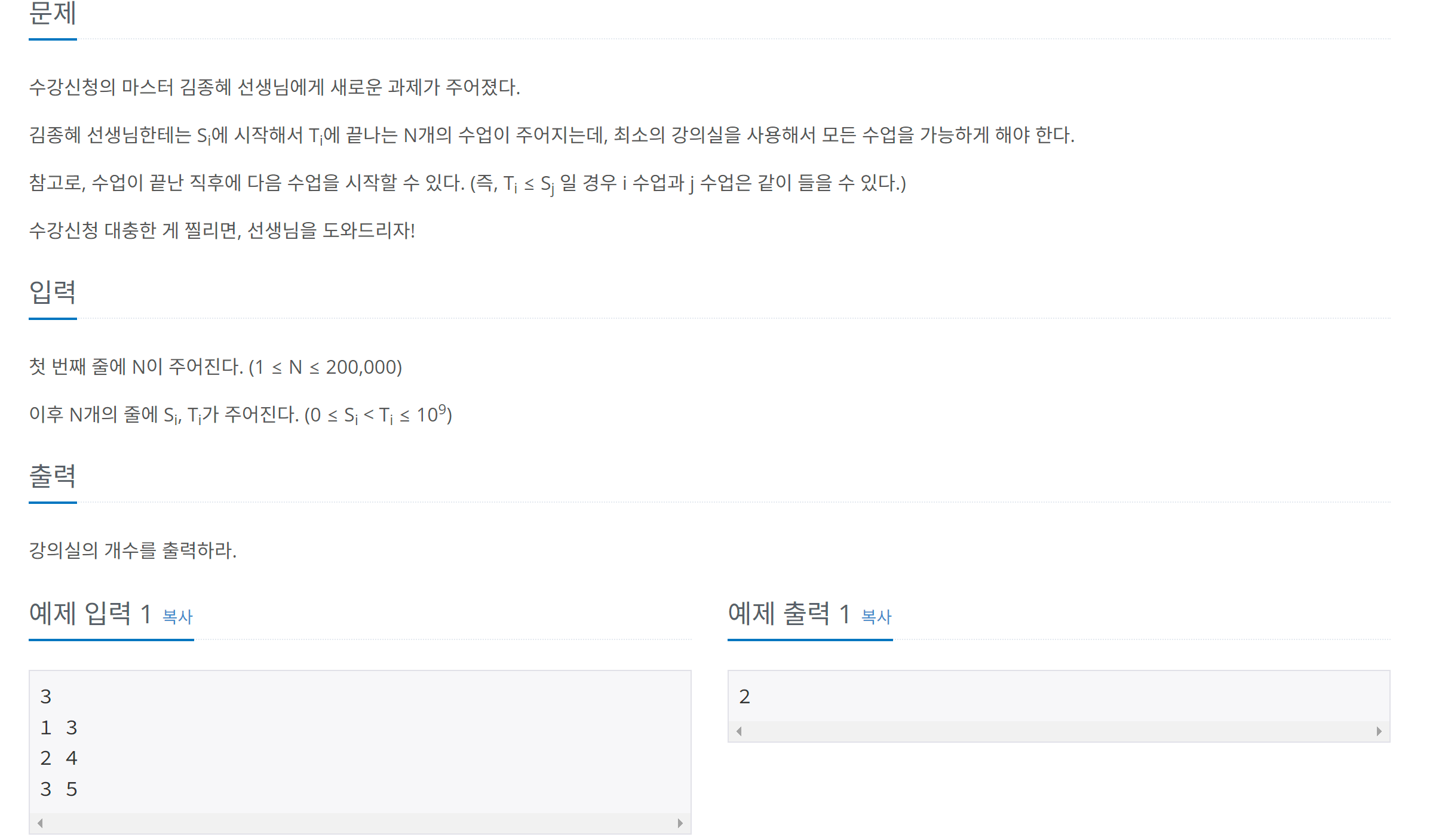 heapq.heappush(number, classes[i][1]) # 넘버 힙에 끝나는 시간도 넣어