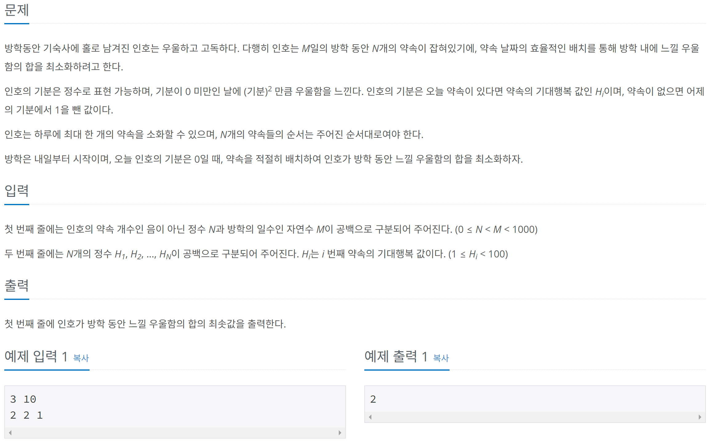 인호의 약속 개수가 3, 방학일이 10일, 약속 각각의 행복이 2 2 1