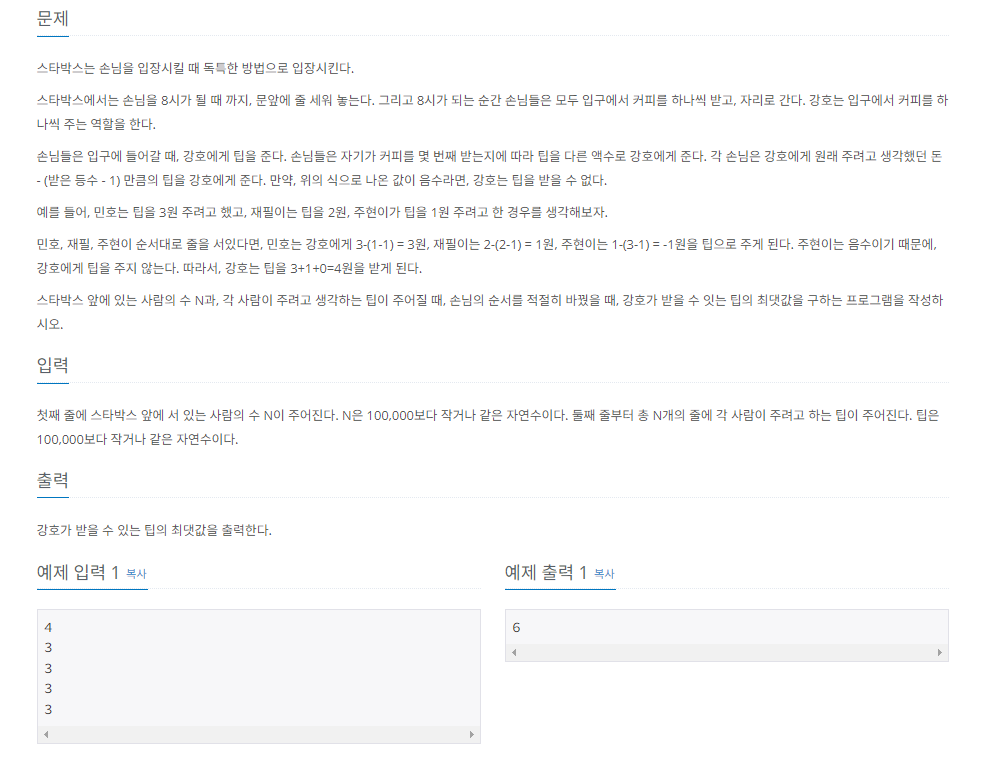 팁 = 원래 주려고 생각했던 돈 - (등수 - 1)